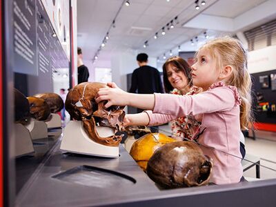 Die Ausstellung gliedert sich in zwei Bereiche: Im Teil „Du bist Wissenschaft" erfahren Klein und Groß Verblüffendes über den Menschen, seine Entwicklung und seine besonderen Fähigkeiten: Wie hat sich der moderne Mensch entwickelt? Wie findet Denken statt? Und was passiert beim Alterungsprozess? Die Antworten darauf gibt es hier. Im Ausstellungsteil „Du schaffst Wissen" können alle ihre eigenen Fertigkeiten an den Mitmachstationen entdecken und ausprobieren.